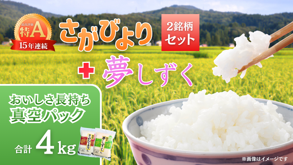 【セット】無洗米「さがびより」2kg+「夢しずく」2kg(真空パック)