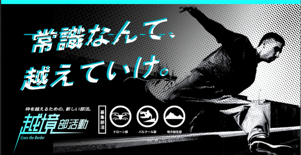 「越境部活動」とは、学校の枠の外に出て、専門的な知見を持ったセンパイ顧問や全国の高校生の仲間たちと共に、自分の興味や関心に沿って部活動を行うことで、興味のあったものを「体感」したり、さらに深く「探究」していく、高校生のためのオンライン部活動です。今までにはない、ニッチな部活という特徴がああります。